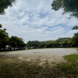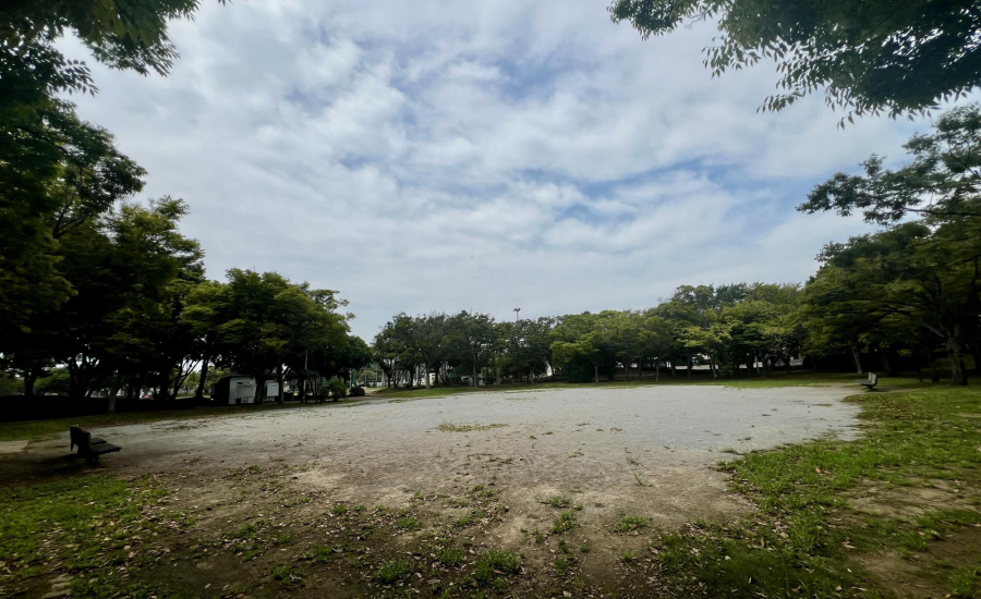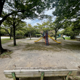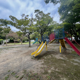 住宅街の中にある中磯辺公園は、見通しがよく開放感たっぷりの公園です。遊具が並ぶエリアのほか、野球場も併設されていて、お子さんがのびのび走り回れる広さがあります。