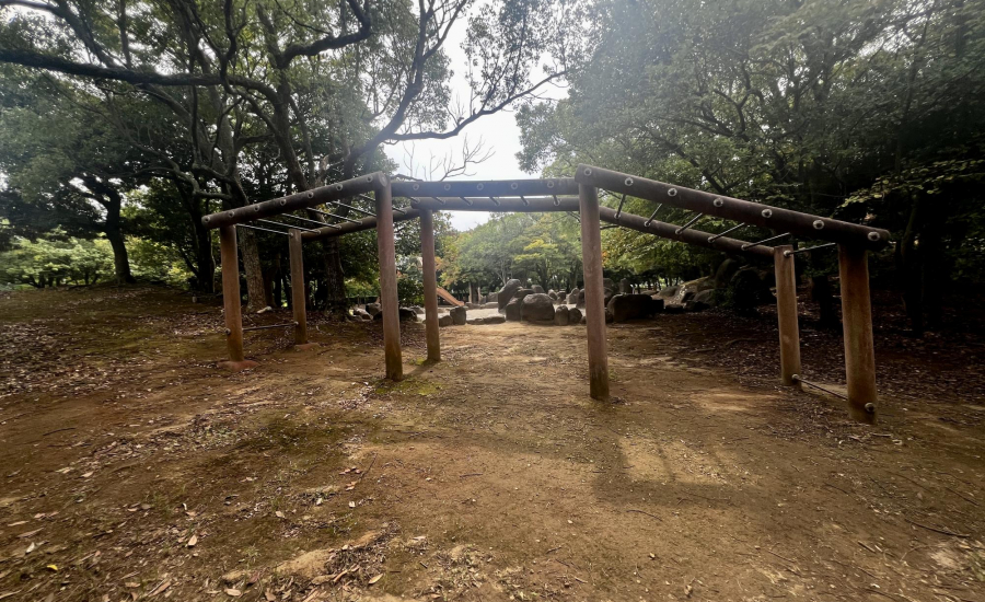 まるで森の中の秘密基地♪ 冒険ごっこが楽しめる公園