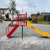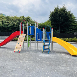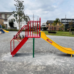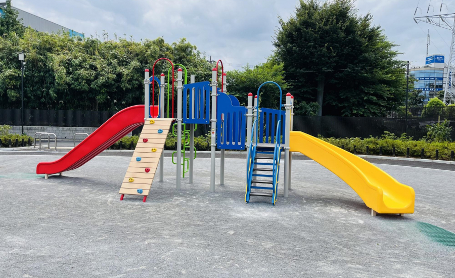 遊具エリアには、年齢に合わせて楽しめる工夫がいっぱい!すべり台は2種類あり、高さのあるすべり台はロッククライミングのように足を引っ掛けながら登れる本格派。冒険気分を味わいたい元気っ子にぴったりです。一方、低めのすべり台は小さな子どもに人気で、すべり台デビューにも安心して挑戦できます。子どもたちがママパパと一緒に楽しんでいる姿も見られますよ。