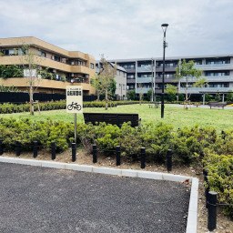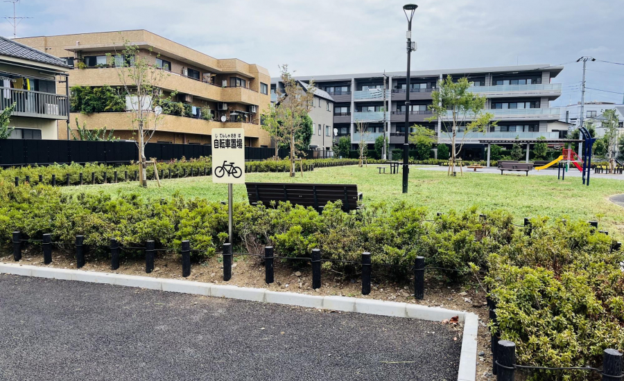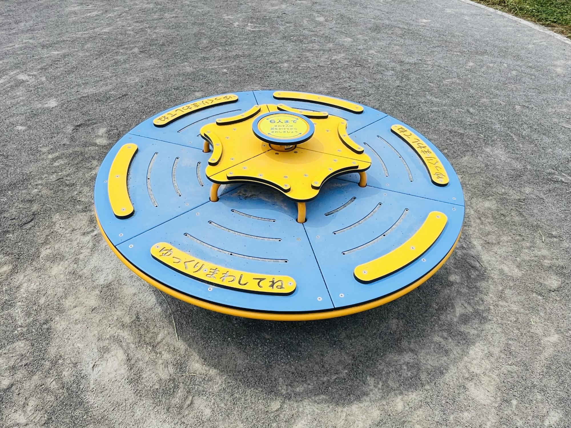 さらに、6人まで一緒に乗れる円盤型の回転遊具も大人気。友だち同士や親子で乗ってくるくる回りながら、大はしゃぎする姿が微笑ましく、公園のにぎやかな雰囲気をさらに盛り上げてくれます。駐輪場もあるため、自転車で来る人も多いです◎