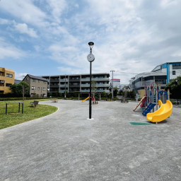 公園のすぐ近くには保健所と児童館があり、夏場はクーリングスポットにもなっています。公園遊びでほてった体をクールダウンをするのもおすすめです。多目的トイレやおむつ替えスペースもあるので安心して外遊びを楽しめますよ!
