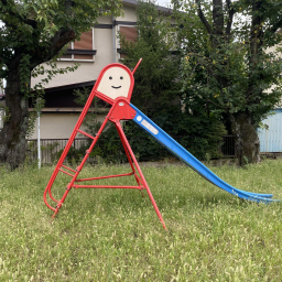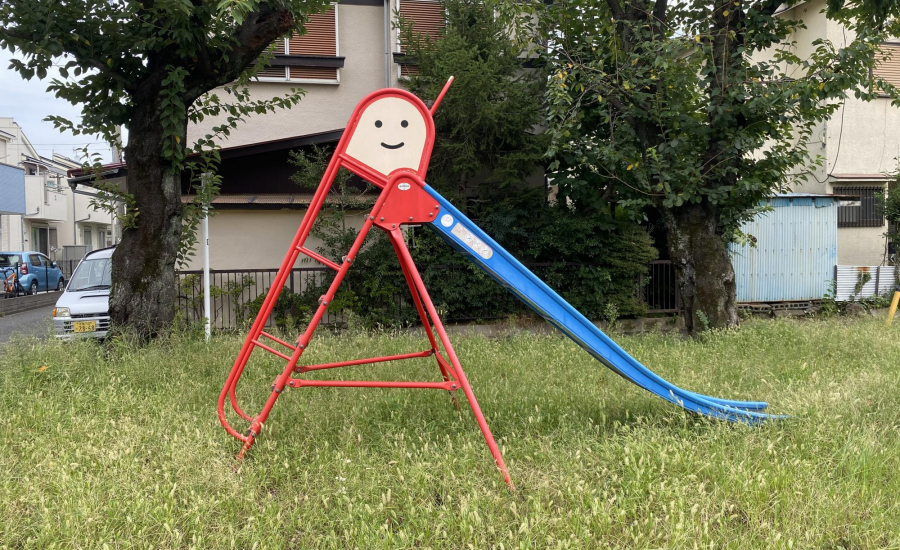 もう一つの特徴的な遊具が、にこっと笑顔のついたユニークな滑り台。かわいらしいデザインは小さな子どもにも親しみやすく、公園の雰囲気を明るく楽しいものにしています。
