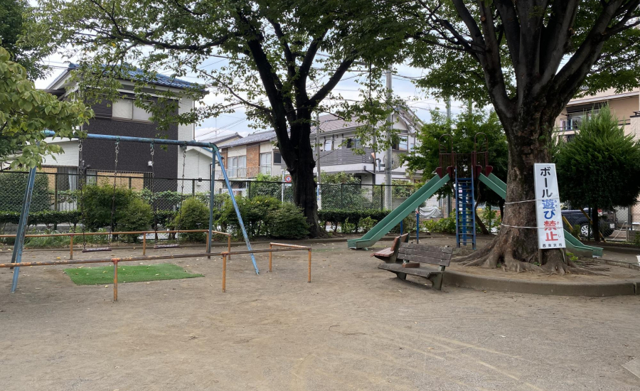 西東京市にある北原第一公園は、高めのフェンスに囲まれた安心感のある公園です。園内は遊具エリアと広場エリアに分かれていて、それぞれの楽しみ方ができるのが大きな特徴です。
