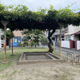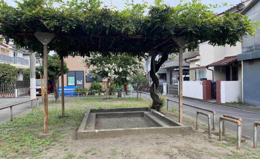 公園の奥には藤棚が設けられ、その下に砂場が広がっています。日差しの強い日でも藤棚が木陰をつくってくれるため、夏場でも比較的快適に遊べるのがうれしいポイントです。砂場は小さな子どもにも人気で、バケツやシャベルを持ち寄って夢中になって遊ぶ姿がよく見られます。