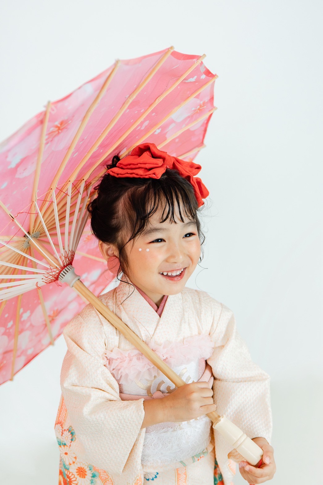 また衣装だけでなく、ヘアメイクもしてもらえます♪子育て中のスタッフさんが、「絶対カワイイ!」「自分の子どもにも着せたい!」と思える着物をセレクトし、心を込めてスタイリングしてくれるので、安心してお任せできますね◎