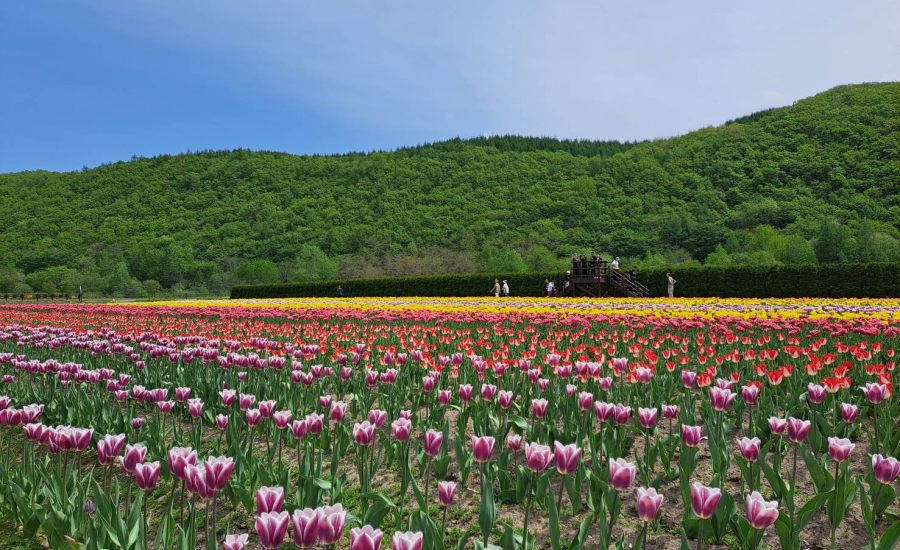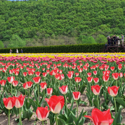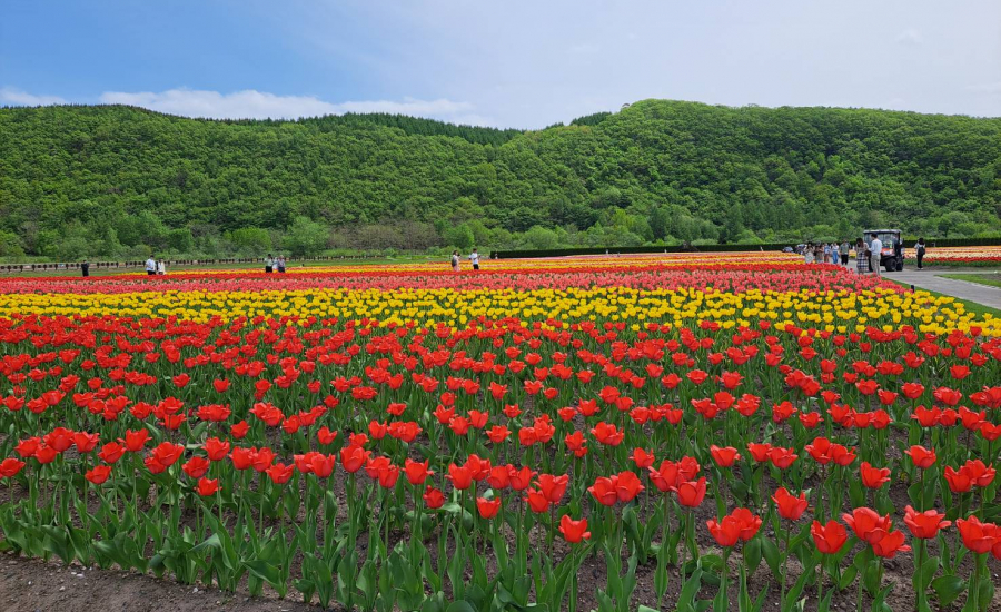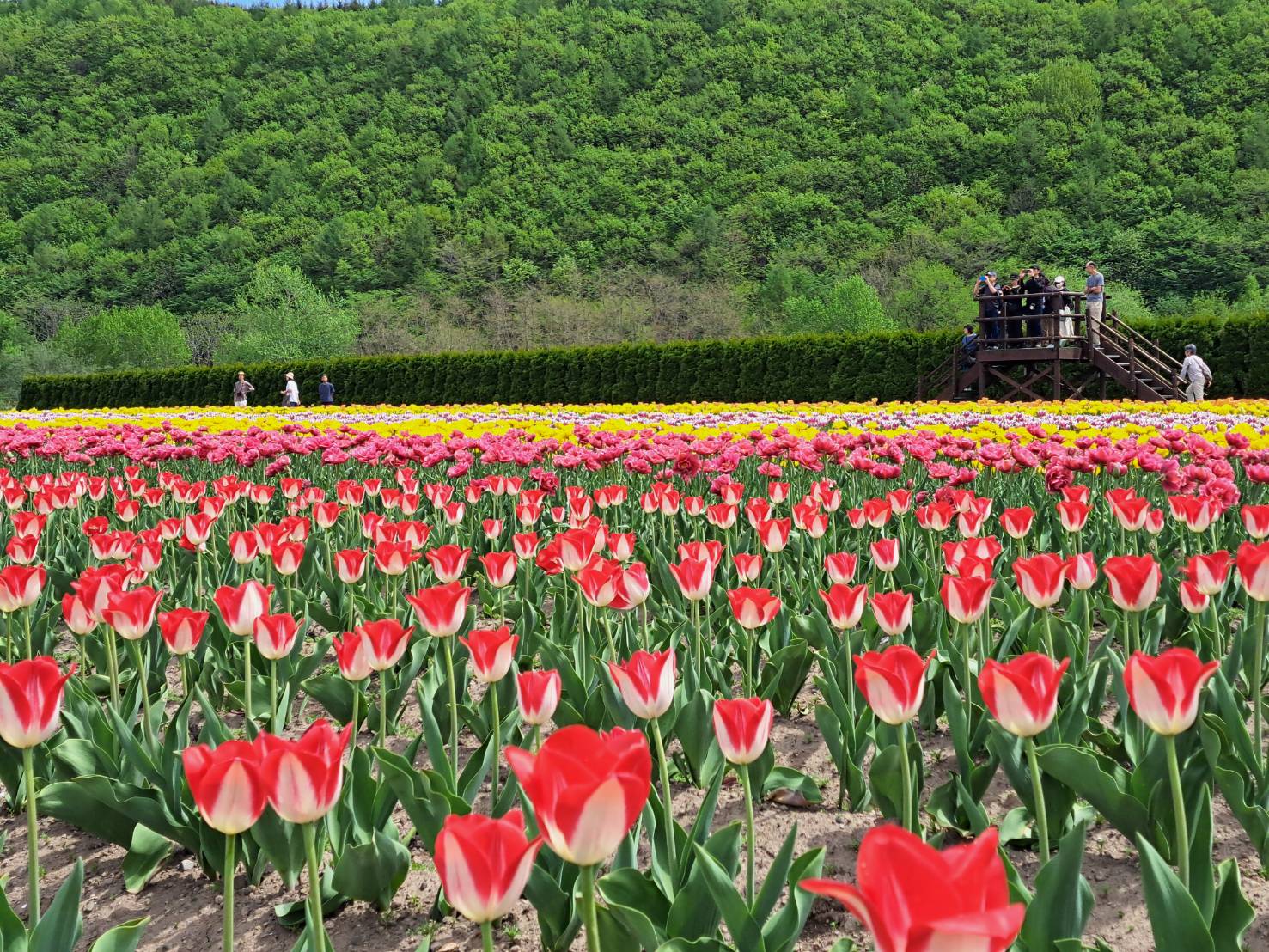 チューリップ公園は、総面積12.5ヘクタール、植付け面積7ヘクタールの広大な敷地に、およそ200品種70万本のチューリップが植えられています。