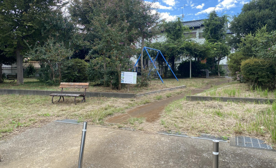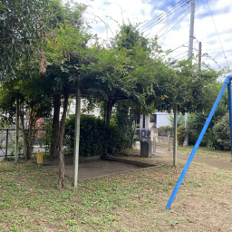 テニスコート2面分ほどの広さながら、地域の人々に大切にされている公園です。公園は通り抜けができる構造になっており、公園前の道路も車通りが少なく、落ち着いた雰囲気です♪小さい子どもと訪れても安心して過ごせる環境が整っています。