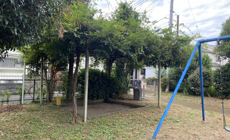 住宅街の角地にある小さな公園です。立派な藤棚が特に目を惹きました。「みんなで育てる小さな公園プロジェクト」という小さな公園の活用プロジェクトがあり、こちらの公園もその対象のようです。これからの発展が楽しみですね。