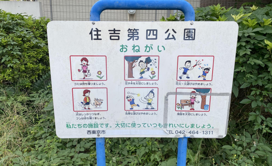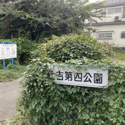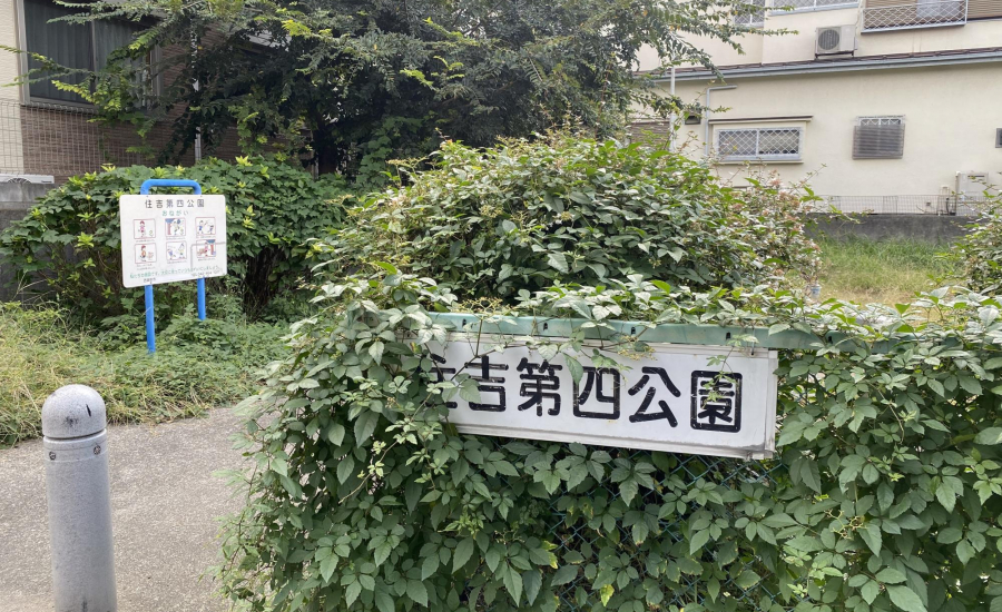 住吉第四公園は、住宅街の中にあるテニスコート一面分ほどの小さな公園です。