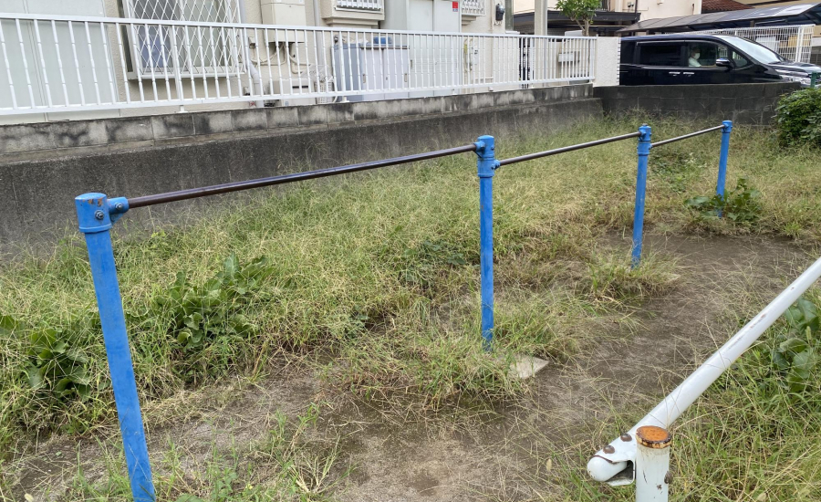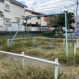 遊具は定番の、二人乗りのブランコ、鉄棒、砂場が揃っています。大きな複合遊具はありませんが、型抜きやバケツ遊び、縄跳びやごっこ遊びなど、ちょっとした遊び道具を持って行けば子どもたちも夢中で遊べる公園になります♪