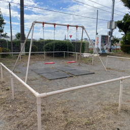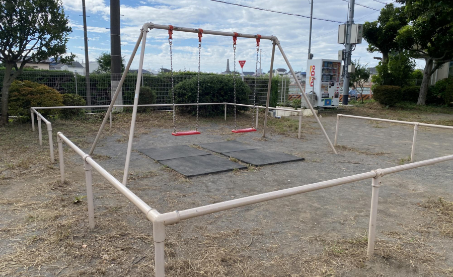 園内は主に砂地で整えられていますが、一部にはコンクリートのスペースもあり、遊びによっては平らな地面が役立つことも多そうです♡公園全体がコンパクトにまとまりつつも、見通しが良いためパパママにとっては安心して遊ばせられる環境が整っています。