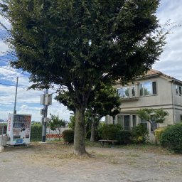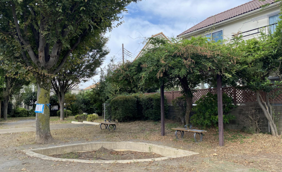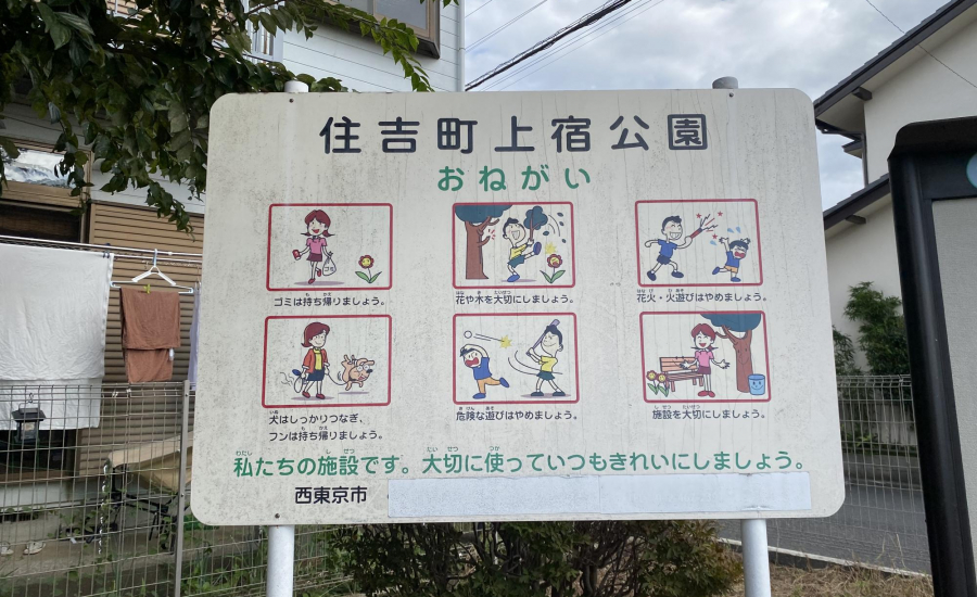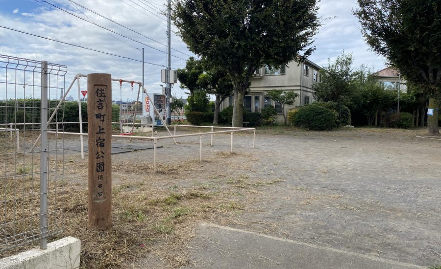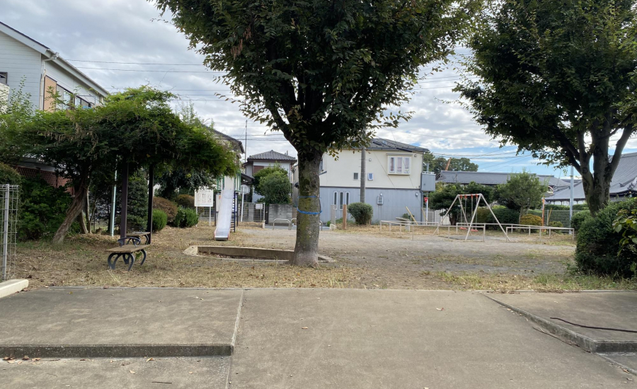 西東京市の住宅街と畑に囲まれた場所にある「住吉町上宿公園」は、テニスコート2面ほどの広さがある開放的な公園です。