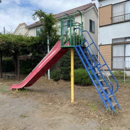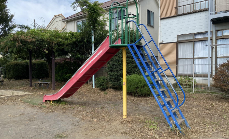 住宅街を抜け、畑が広がる通りに出ると現れる公園です。畑側の入り口は階段で数段上がります。反対の住宅街側からも入ることができます。遊具があるエリアは周囲が畑に囲まれているので視界がとても開けており、天気がいい日は気持ちがよかったです。
