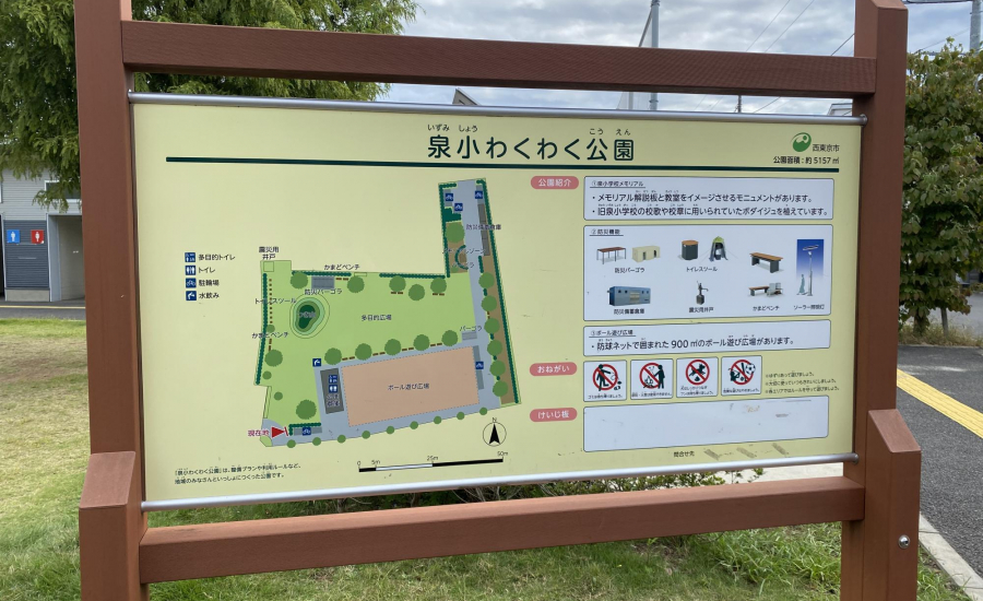 園内には、かつて泉小学校があったことがわかる「メモリアルゾーン」が整備されていて、小学校の思い出を感じながら歩くことができます。
