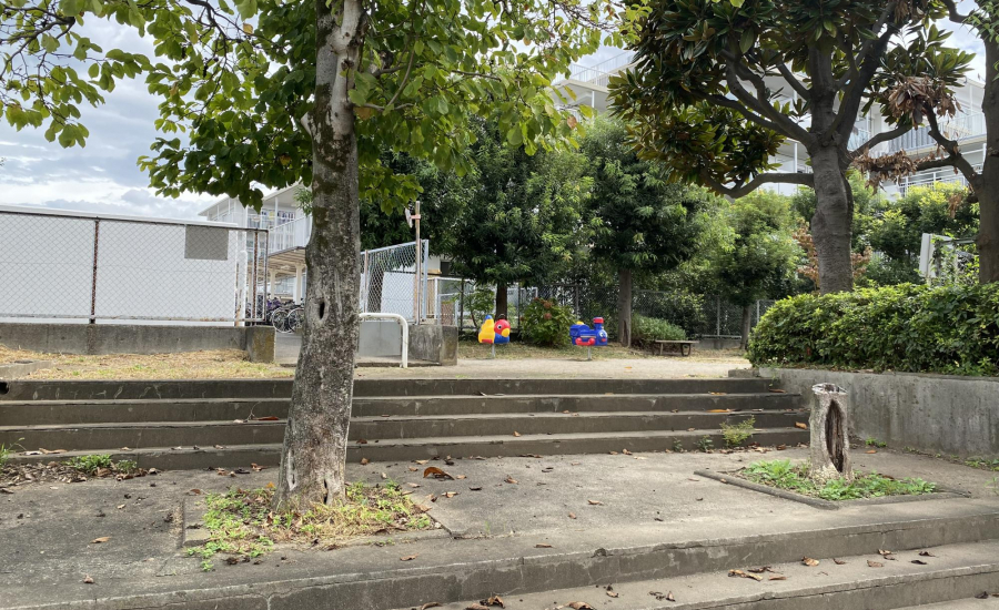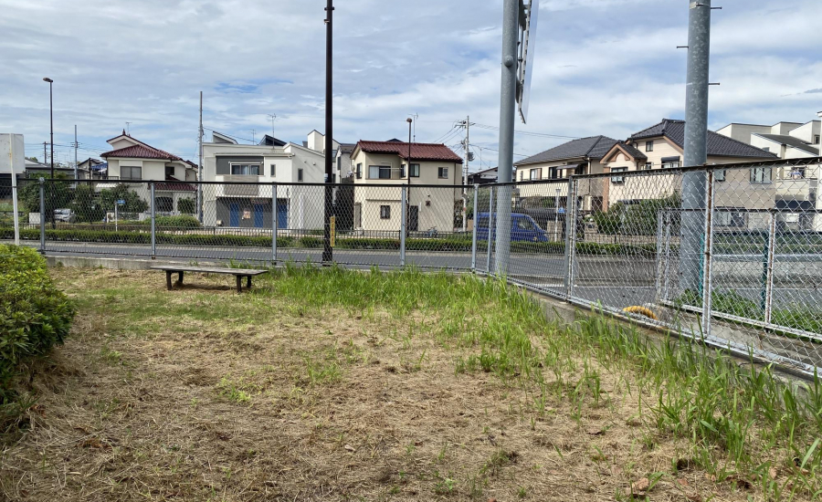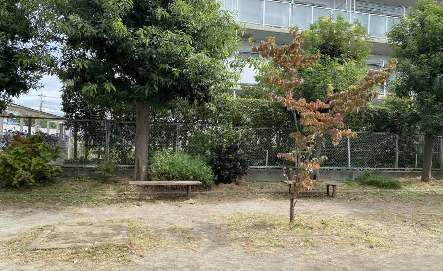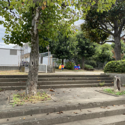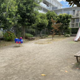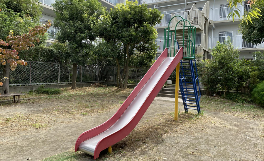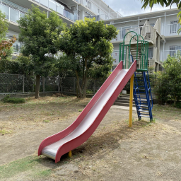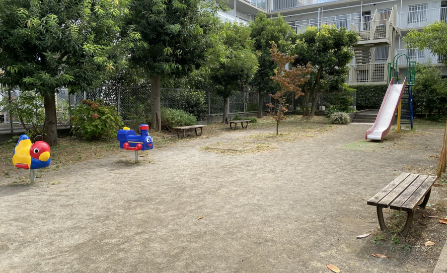 団地の隣にある小さな公園です。国道の目の前と、団地側に入り口があり、団地と公園の間に自転車が通れる道があります。周囲はフェンスで囲まれているので安全ですが、公園を出ないように気をつける必要がありそうです。