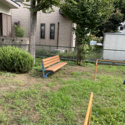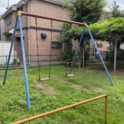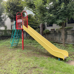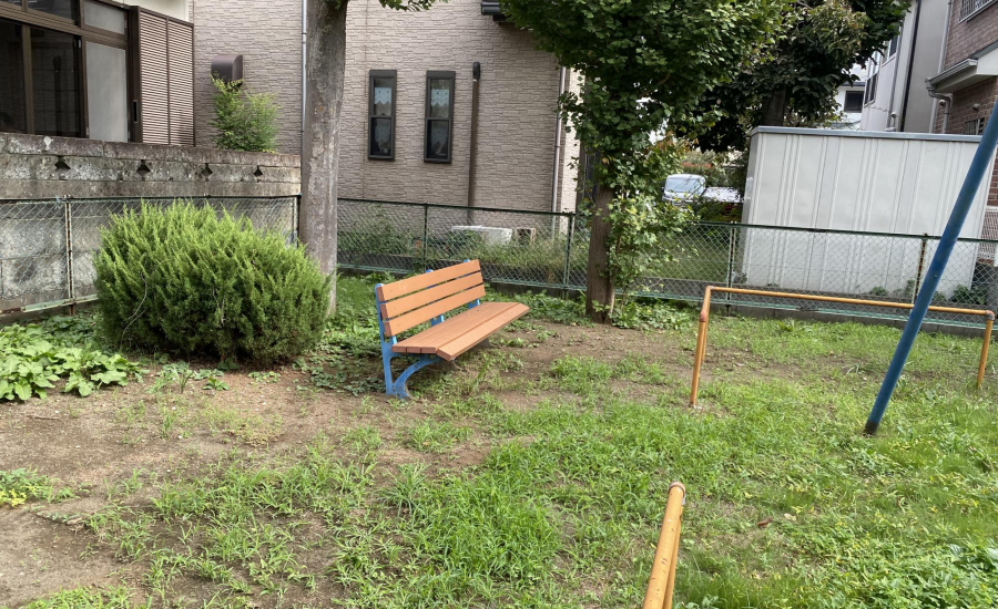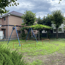 住宅街の奥、行き止まりにある小さな公園です。公園の中はゴミも落ちておらず、夏場もしっかり草刈りが行われているようでとても手入れが行き届いた公園に感じました。園内はそこまで広くなく、鬼ごっこなどは難しそうですが小さい子どもには丁度良い広さだと思います。