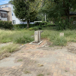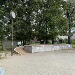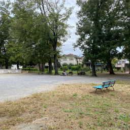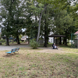 栗原緑地公園のすぐ隣にある公園です。園内は大きな広場があり、ステージのようなスロープで遊ぶ子どもたちがいました。トイトレ中の小さい子どもはトイレもあるので安心です。隣の栗原緑地公園と行き来して様々な種類の遊びができそう。