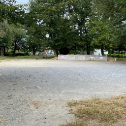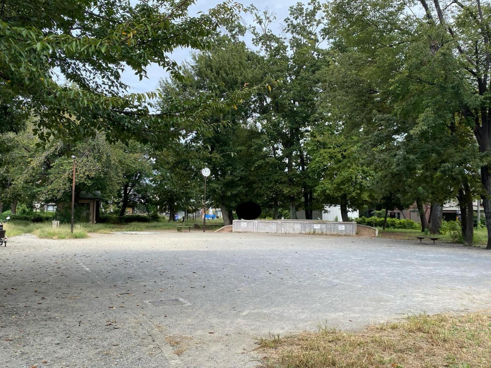 園内は外周をぐるりと木々が囲み、緑に包まれた穏やかな雰囲気になっています。中央には広い砂地の広場があり、走ったりボール遊びをしたりと自由な遊び方ができます。