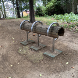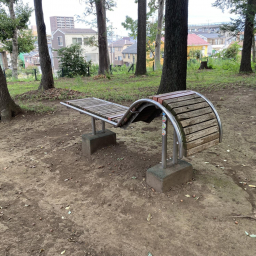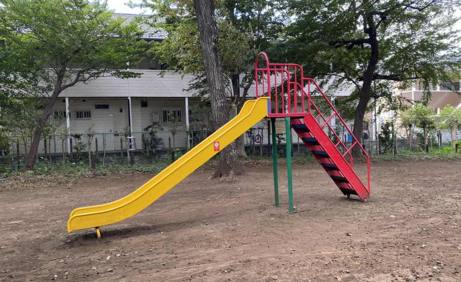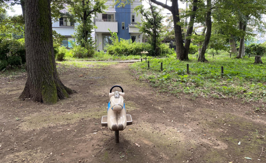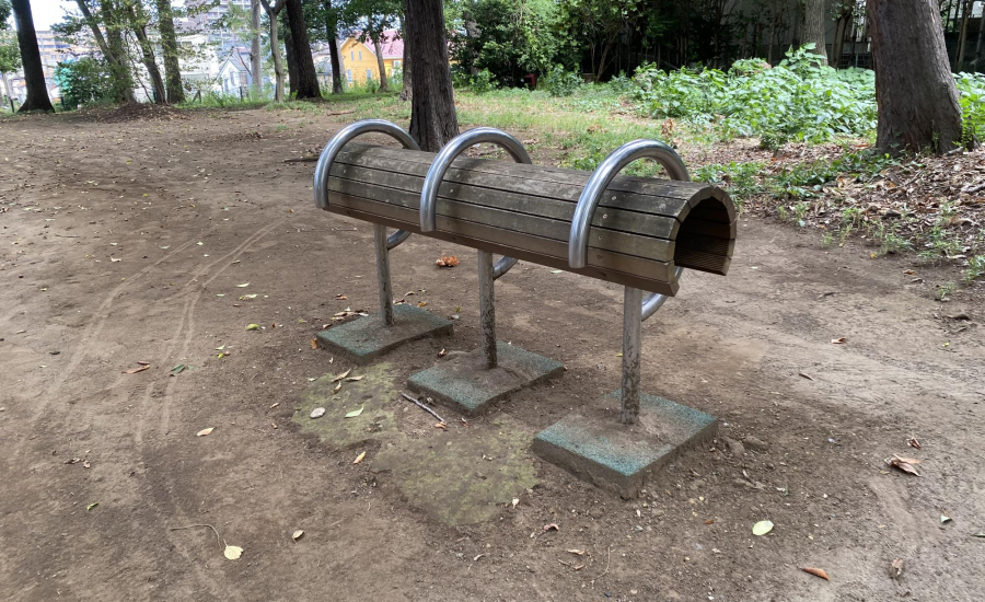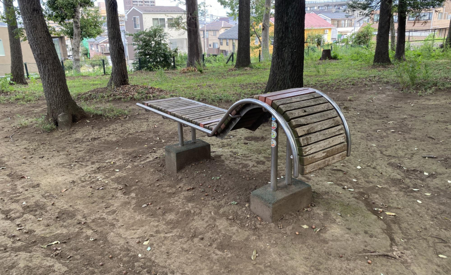 また、公園内には少し変わった形のベンチがいくつかあり、子どもたちがちょっとした遊び場として使うことも。遊具で遊ぶだけでなく、木々の間を使ってかくれんぼをしたり、自然と触れ合いながらのびのび過ごせる場所です。