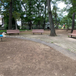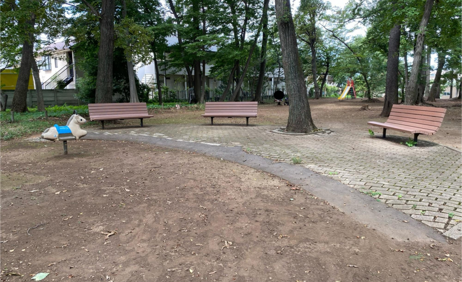 公園内にはベンチが複数設置されており、すべて木の影の下になるよう配置されています。夏場や日差しの強い日でも、木陰で涼しく休憩できるのが嬉しいポイントですね♪