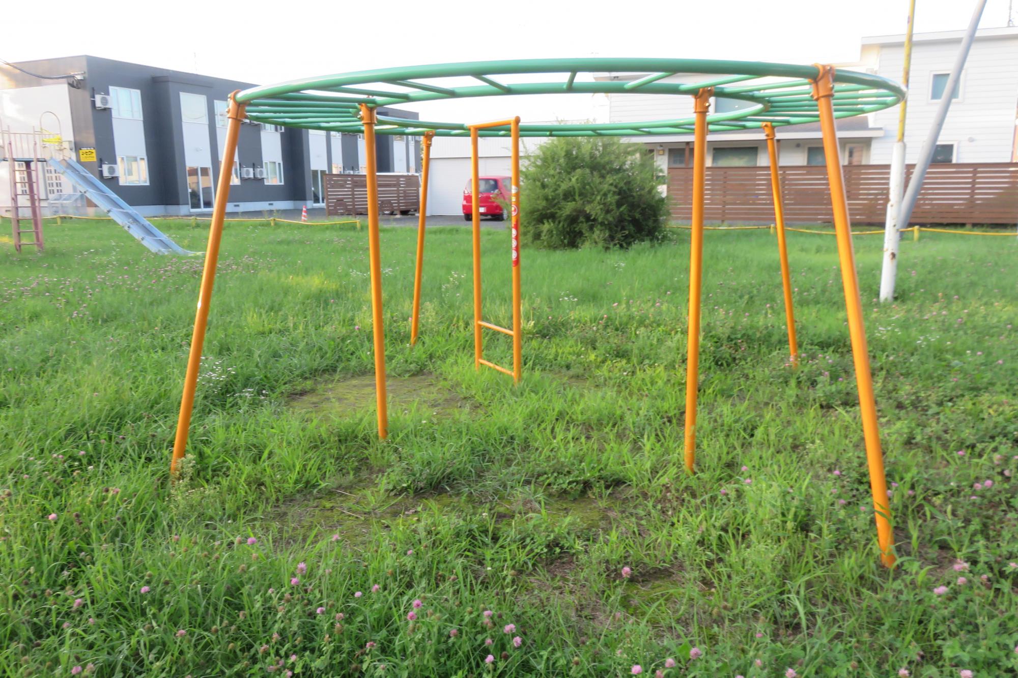 ブランコが2基、円型の雲梯にアーチ型の雲梯、ジャングルジムなど遊びごたえがあります♪ブランコは小さいお子さんに人気なので、2基あると順番待ちをしなくてもいいのが嬉しいポイントですよね。