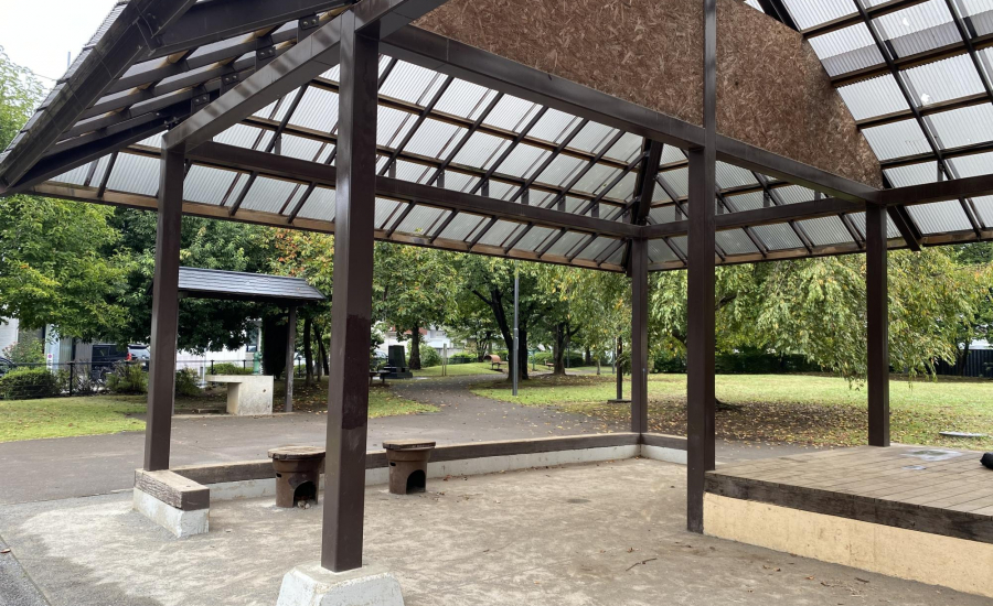 こちらの公園の最大の特徴は大きな屋根の下にあります♪