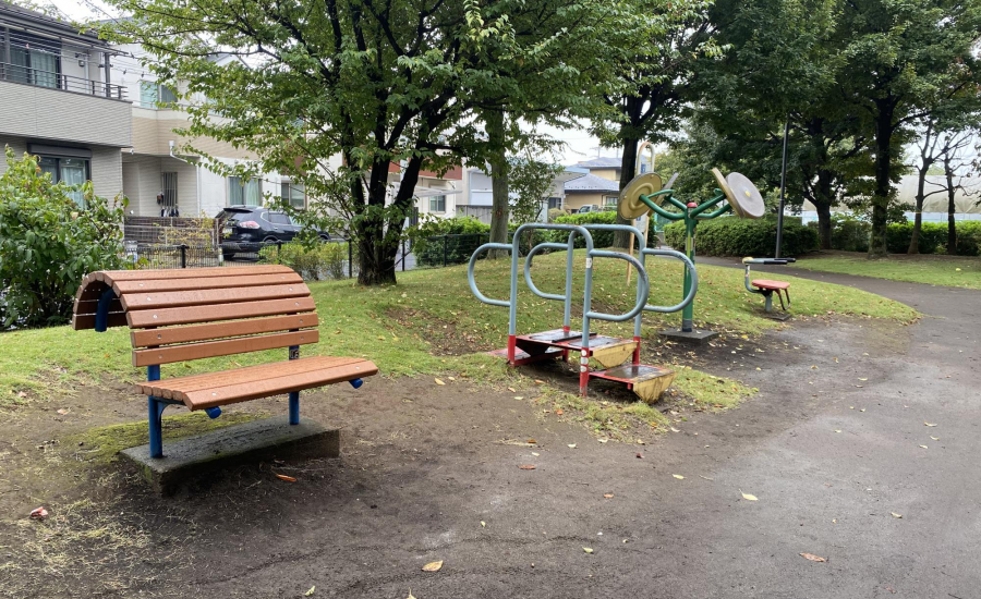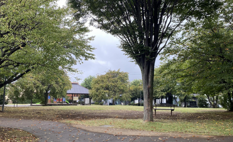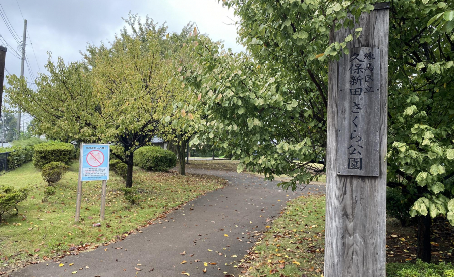 練馬区の住宅街にある「久保新田さくら公園」は、広々とした敷地と緑豊かな木々が特徴の公園です。