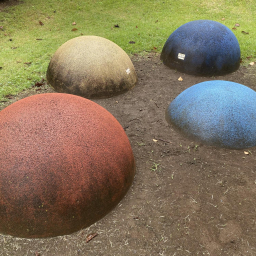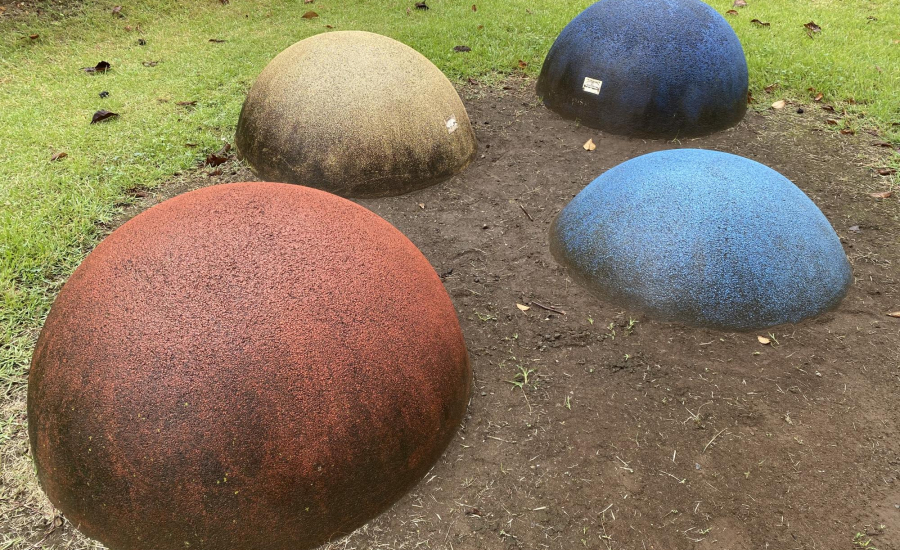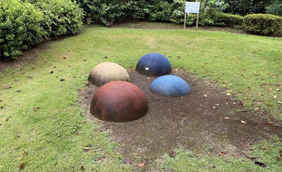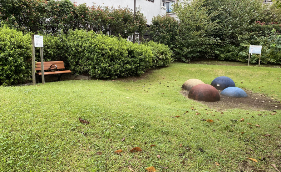 さらに、公園の端の地面には大きな半球体が4つ埋まっていて、バランスを取って渡ったり、上に乗ったりして遊ぶ子ども達の姿も見られます。