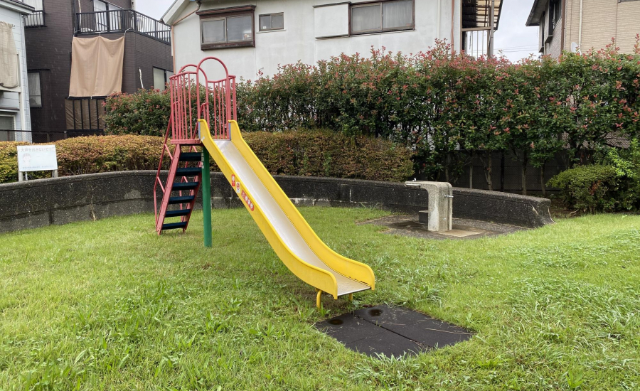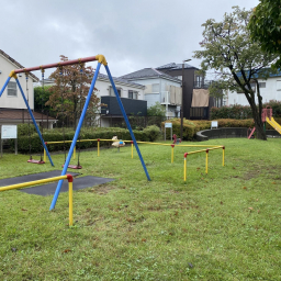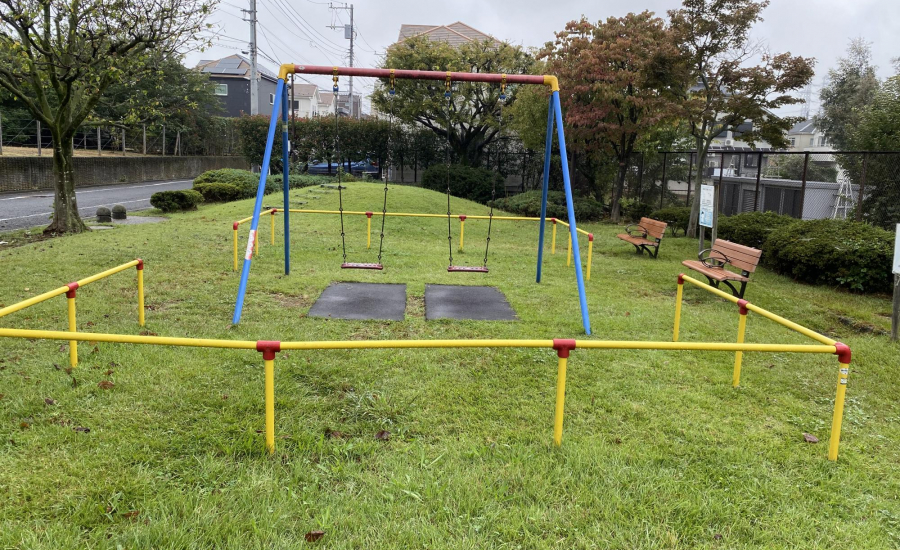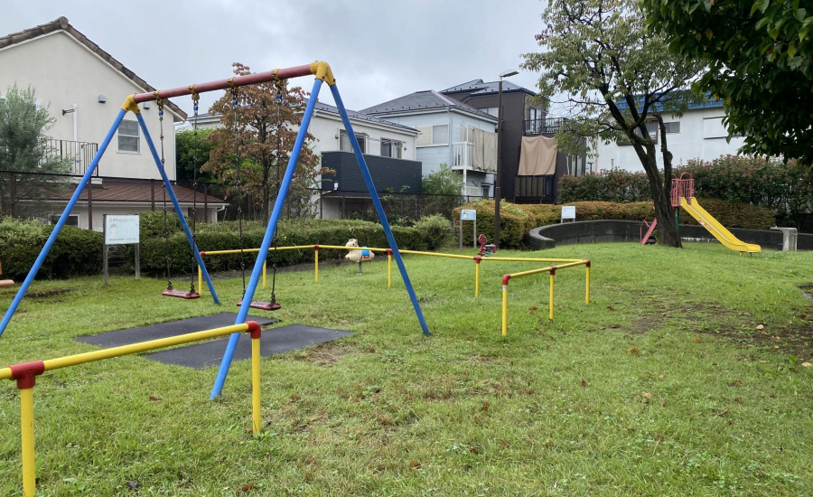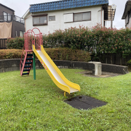 周囲は道路に面していますが、車の往来は少なく、車が通っても速度が遅いため安心して子どもと遊ぶことができます。ただ公園の外周に柵などは設置されていないため注意が必要です。
