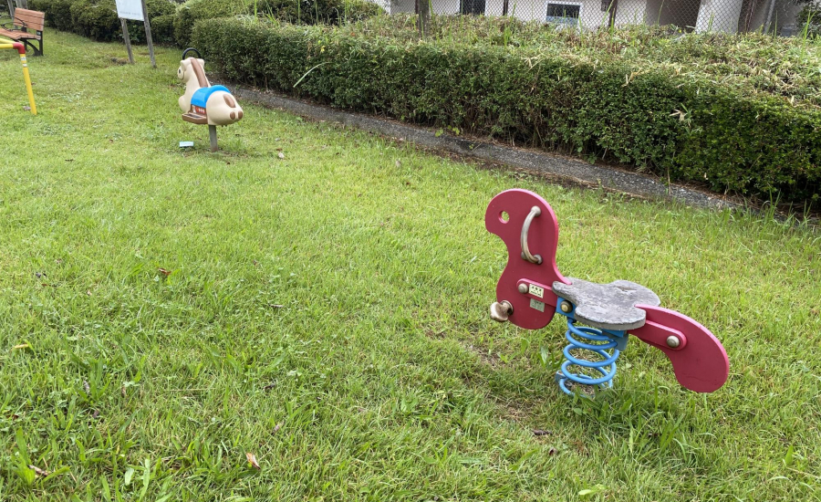 公園内に設置されている遊具には、低めの滑り台や2人乗りのブランコ、馬の形をしたスプリング遊具が2台並び、小さな子どもでもひとりで挑戦できるつくりになっています。