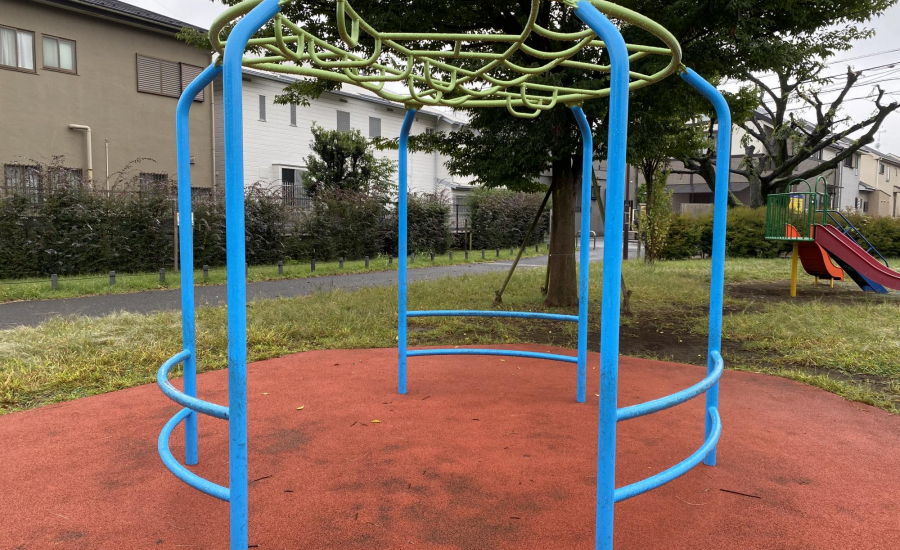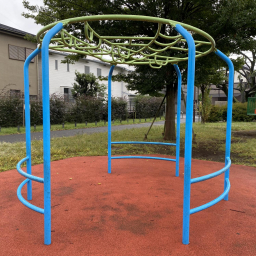 円のなかに蜘蛛の巣が張ったようなユニークな形をしたうんていはこの公園でしか見かけたことがありません。