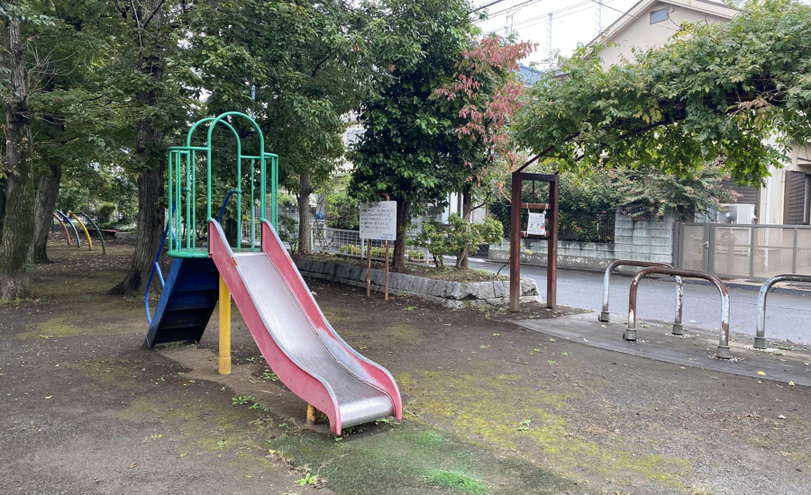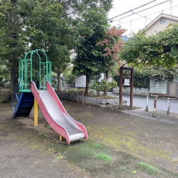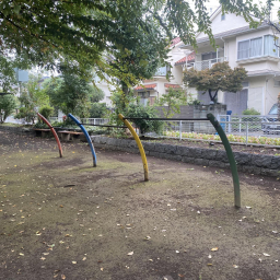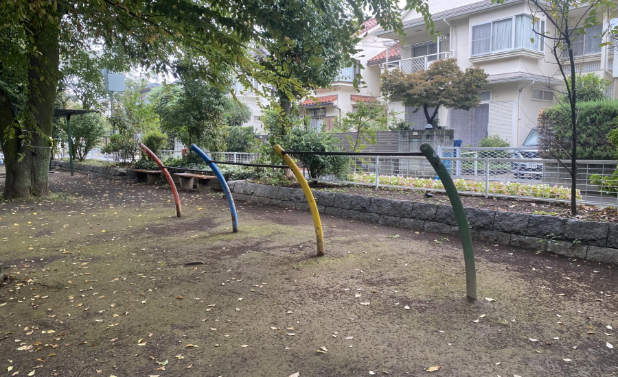 遊具は低めに造られた滑り台、3段階の高さに分かれた鉄棒、円形の砂場、そして白いラッコの形をしたスプリング遊具。どの遊具も低年齢の子どもでも安心して遊べる設計で、幼児から小学生低学年まで幅広く楽しめます!