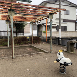 住宅街の一角にある小さな公園です。園内は柵に囲まれており、面している道路も車通りが少ないので比較的安全といえます。定番の遊具は一通り設置してあり、小さい子どもであれば満足できる公園だと思いました。日々のお散歩コースに取り入れてみてはどうでしょうか。