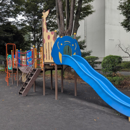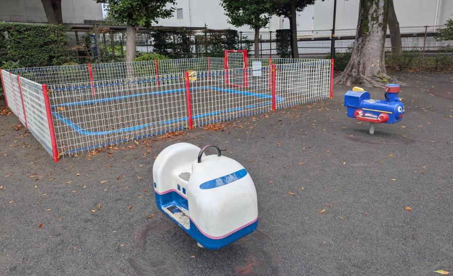 京王線上北沢駅から線路沿いに歩いて3分という好アクセスの上北沢公園。駅から近い公園は狭かったり遊具が少なかったり…ということも多いのですが、ここはたっぷり遊べます!
