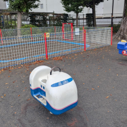 電車がよく見える方向を向いたロッキング遊具は、汽車や新幹線のデザインで、こちらも乗り物好きの子どもたちに人気です♡