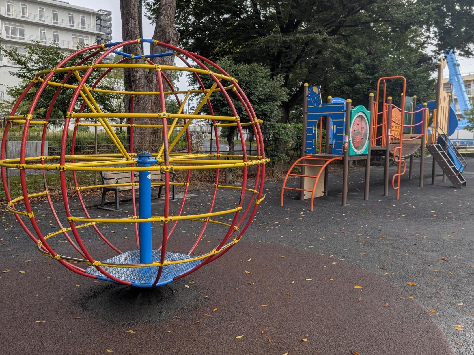 今では珍しい回転ジャングルジムや、定番の鉄棒、砂場もあります♪