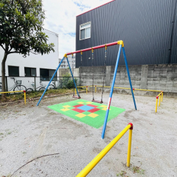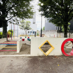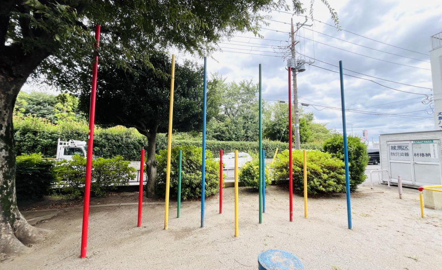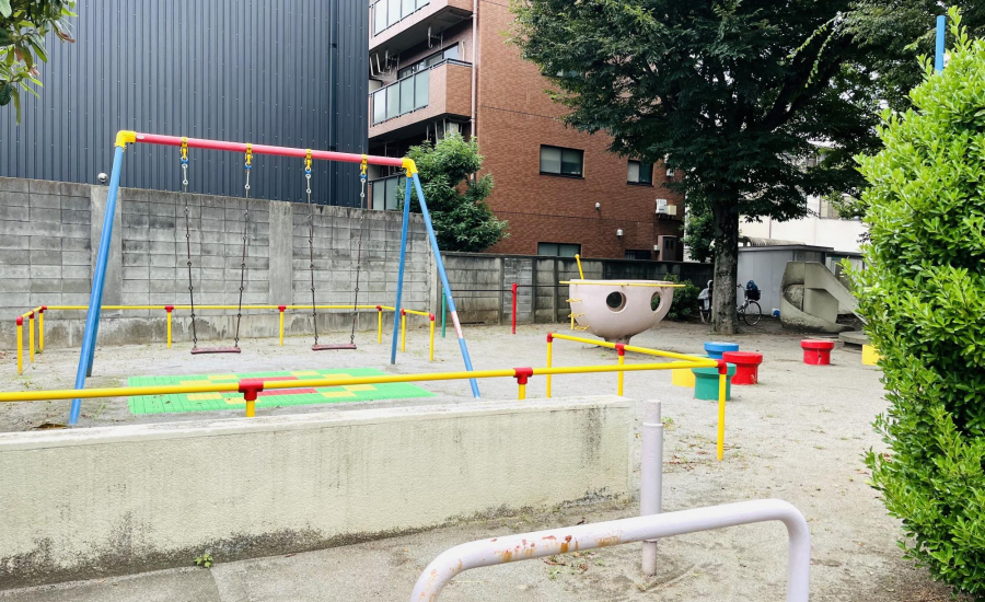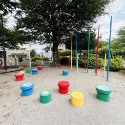 さらに、ブランコやすべり台、鉄棒もそろっているので、「ブランコに乗りたい!」「すべり台をしたい!」という子どもの声にも応えられますよ。全体的にカラフルで明るい雰囲気が広がる児童遊園。訪れるだけで、子どもの想像力とワクワクが自然と膨らみます!