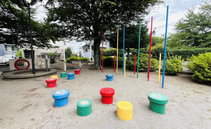 北町三丁目児童遊園には、個性的で楽しい遊具がそろっています。