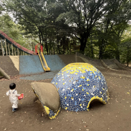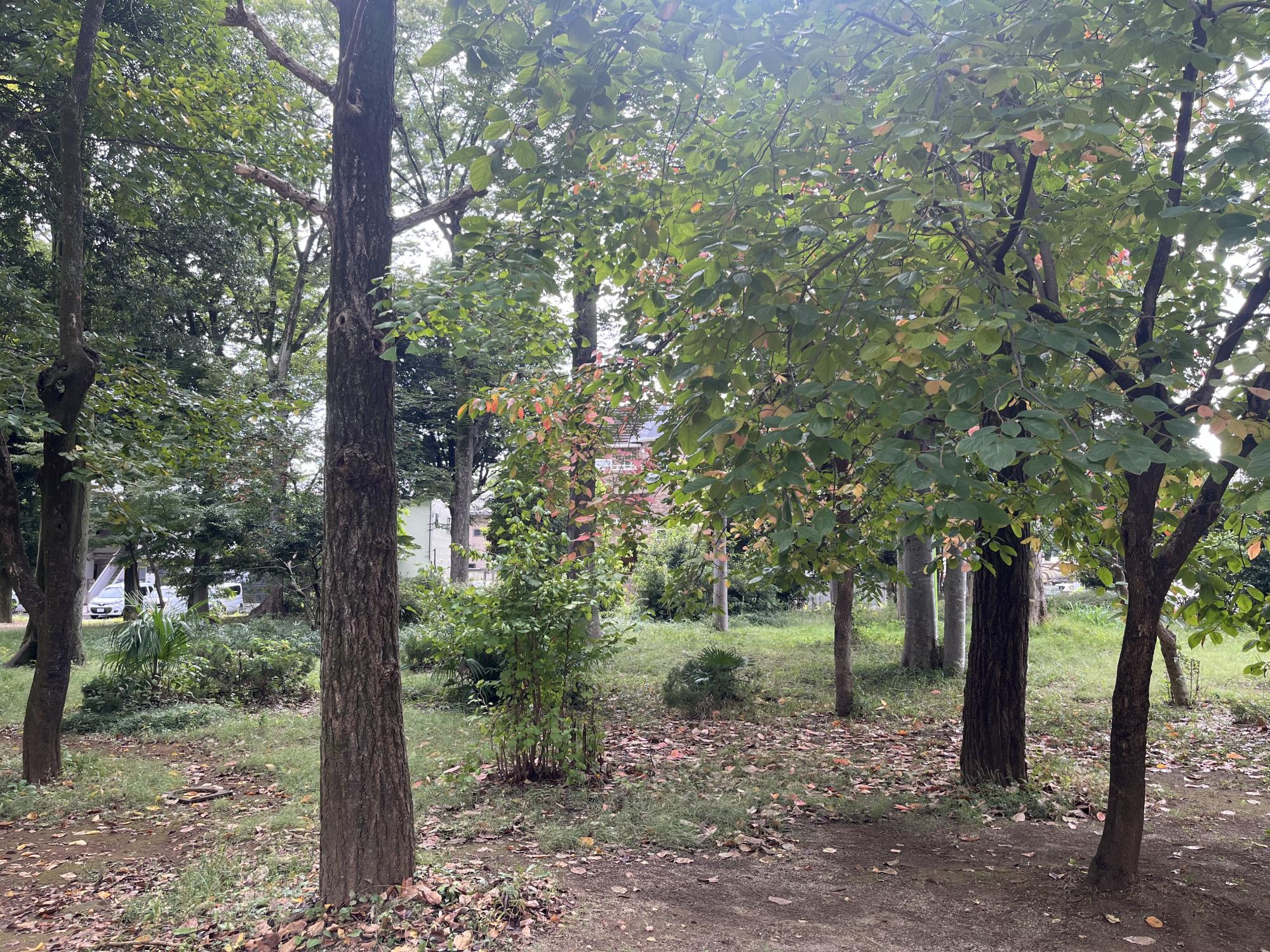 木がたくさん生えており、晴れた日には木陰が涼しくて気持ちがいいです。小さなベンチもいくつかあるので、公園で遊び疲れたら座って一休みもできますよ!レジャーシートを敷いて、ピクニックをするのもおすすめです。秋にはどんぐりや紅葉した葉っぱがたくさん落ちているので、どんぐりや落ち葉拾いも楽しめます★