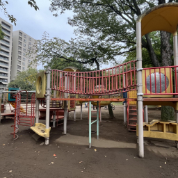 複合遊具やアスレチック、すべり台、ブランコ等の遊具が豊富で、親子連れで賑わっている公園です★特に大型の長いすべり台は大人気!木がたくさん植えられていて小さな森のようになっているので、プチお散歩にもおすすめです。虫取り網を持って探検したり、秋にはどんぐりや紅葉した葉っぱを拾ったり等、楽しみ方がたくさんありますよ。親子用のトイレがあり、おむつ交換台がついているのも安心です。
