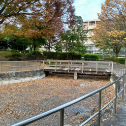 広々とした公園です。隣に図書館もあり、子どもが遊ぶのに困りません。夏場は水遊び場としても活用されていたようですが、現在水質調査の結果により水場に水は溜まっていませんでした。広々とした園内を冒険気分で散歩できます♪