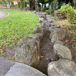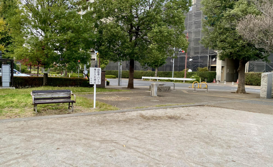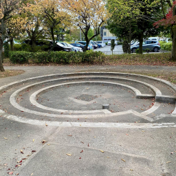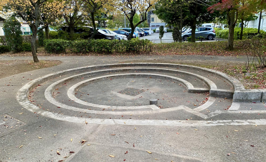 公園内にはサークル状の水遊び場があり、水路が公園内を半周ほどめぐっています。夏には子ども達が水遊びを楽しめるエリアだったようですが、現在は故障のため使用停止中とのことです。