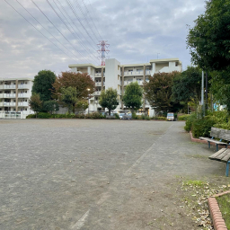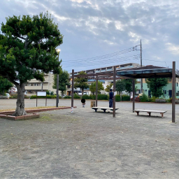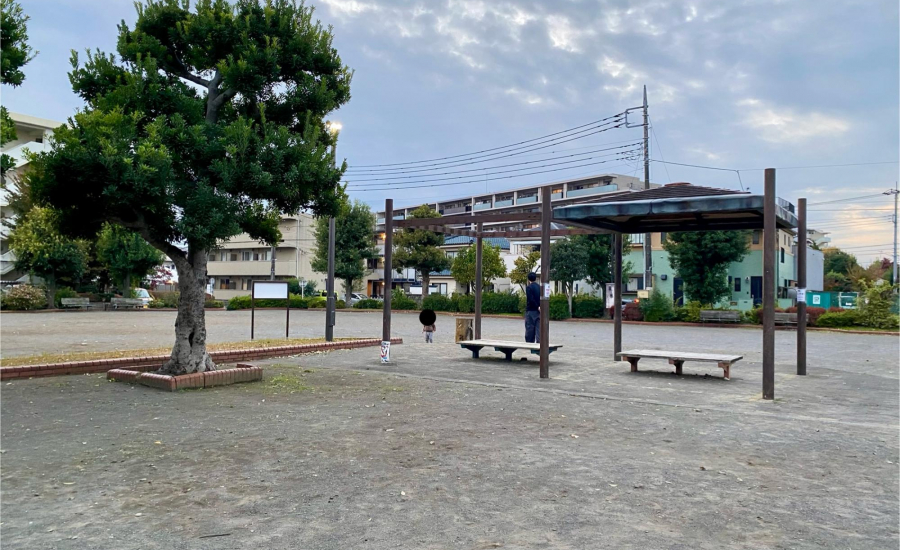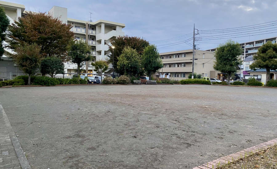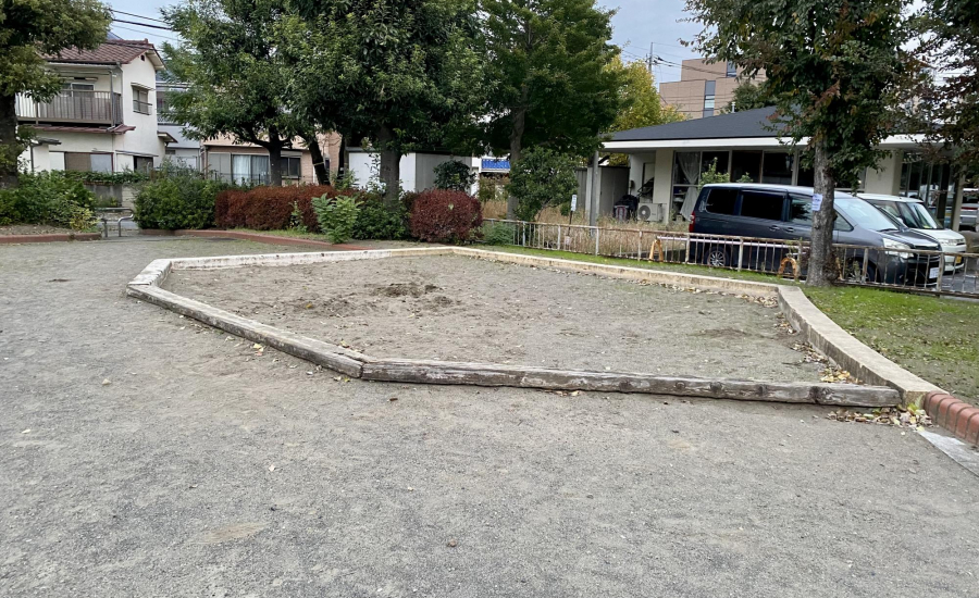昭島市にある「仲町公園」は、広々とした砂地の広場が広がる、開放的でのびのび遊びやすい公園です。