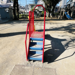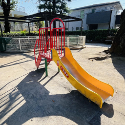 そのほかにも、階段が2段だけの小さなすべり台があり、まだ遊びに慣れていない小さな子どもでも安心してチャレンジできます!傾斜がゆるやかで、親がそばで見守りながら遊べますよ。どこか懐かしい雰囲気を感じさせる犬の形をしたスプリング遊具は、3人まで一緒に乗ることができ、きょうだいや友達、親子でワイワイ楽しめます!