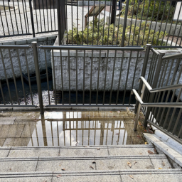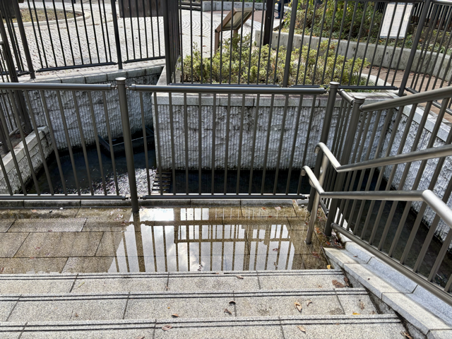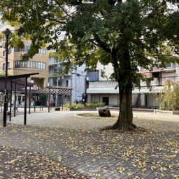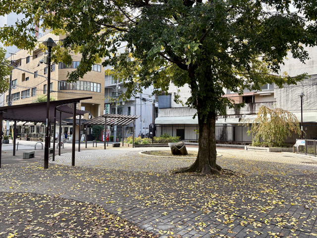 また、小さな池や扇状のパーゴラ、大きな木もあり、季節ごとの変化を感じられます。駅に近い立地ながら、入り口前の道路が一方通行なこともあり、比較的落ち着いた雰囲気です。