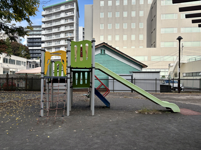 公園内には開けたスペースと複合遊具がひとつあり、すべり台を滑ったり、ロープに登ったり、限られた遊具を活かして、自由に遊ぶことができます。走ったり追いかけっこをしたりと、体を動かしたい子にもぴったり。