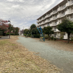 団地の中にある横長の公園です。公園の横には図書館がありました。近隣に住んでいたら、公園で散歩したり、遊んだりした後は図書館で本を借りて帰るという定番のコースをつくってもよさそうです♪周辺はとても静かなので赤ちゃんを連れた散歩におすすめです。