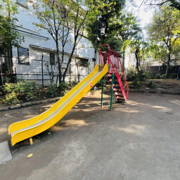 園内にはすべり台、ブランコ、スプリング遊具が設置されています。すべり台はすべる部分が少し長めに作られており、スピードを楽しみながらも安心して遊べるようになっていますよ。