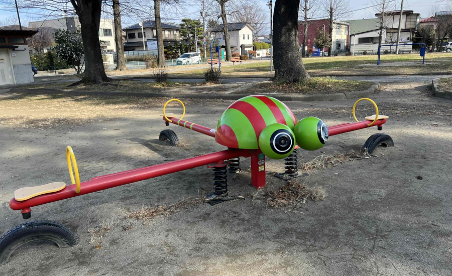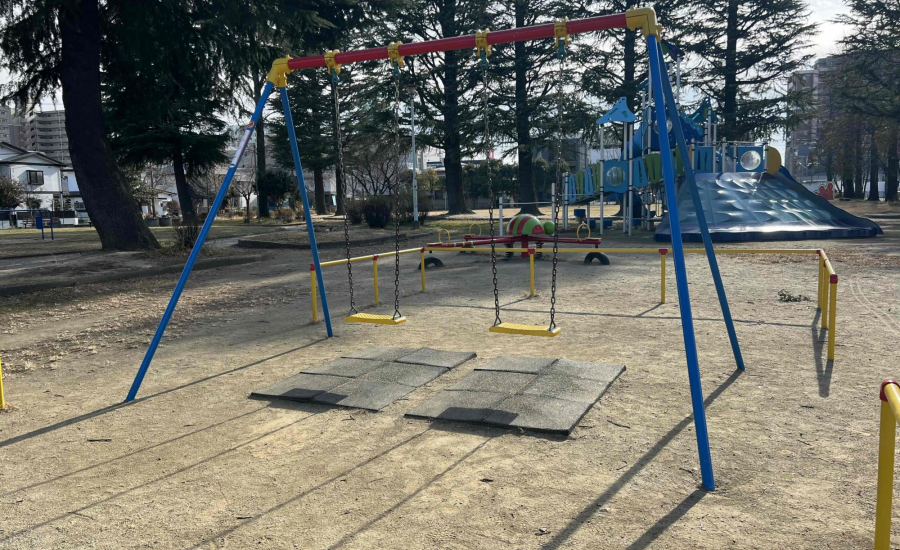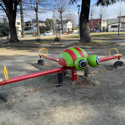 珍しい形のかわいいスプリング遊具は子ども達の好奇心をくすぐること間違いなし♪定番のブランコもあり、飽きずに長く遊ぶことができます。