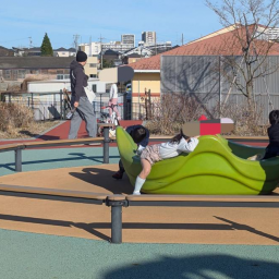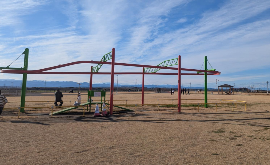 日当たりもよく空気も綺麗なこの場所で、子ども達に特に人気なのが高さのあるコンビネーション遊具。頂上からの景色がおすすめです。そしてその頂上からのすべり台が急勾配でスリル満点!
